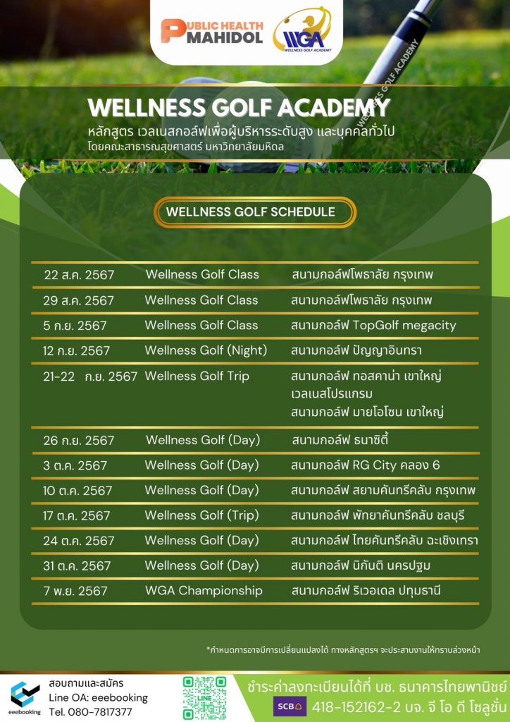 เปิดรับสมัครแล้ว Wellness Golf Academy หลักสูตร เวลเนสกอล์ฟเพื่อผู้บริหารระดับสูง และบุคคลทั่วไป โดยคณะสาธารณสุขศาสตร์ มหาวิทยาลัยมหิดล