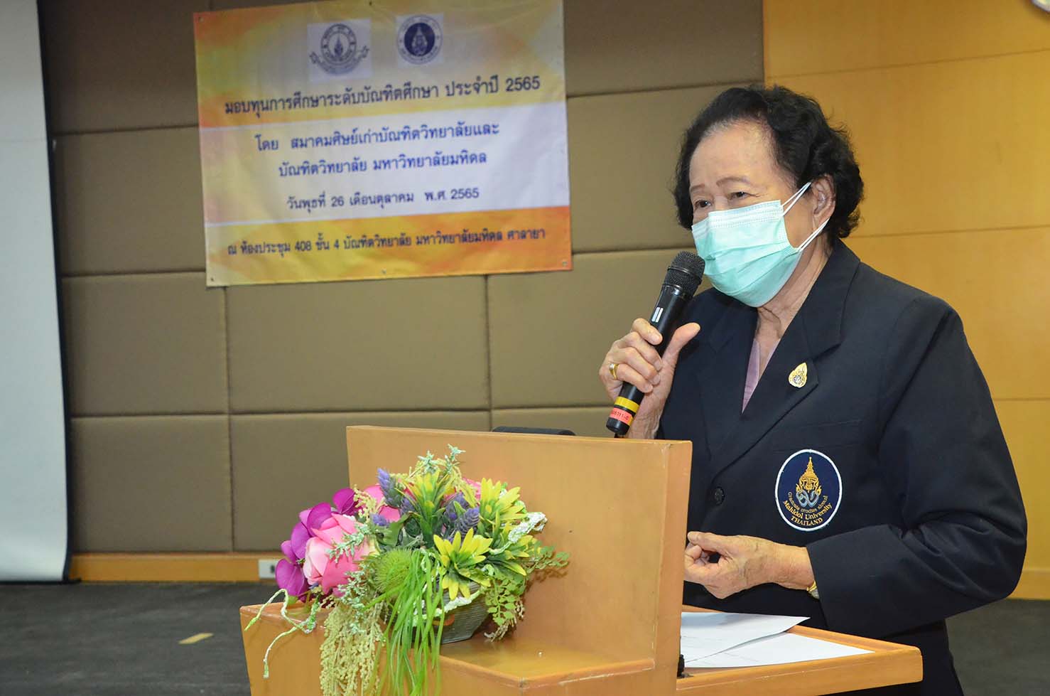 สมาคมศิษย์เก่าบัณฑิตวิทยาลัย ร่วมกับบัณฑิตวิทยาลัย มหาวิทยาลัยมหิดล จัดพิธีมอบทุนสนับสนุนการทำวิทยานิพนธ์บางส่วน สำหรับนักศึกษาบัณฑิตวิทยาลัย มหาวิทยาลัยมหิดล ประจำปี 2565 จำนวน 100 ทุน ณ ห้องประชุม 408 ชั้น 4 อาคารบัณฑิตวิทยาลัย มหาวิทยาลัยมหิดล ศาลายา เมื่อวันที่ 26 ตุลาคม 2565