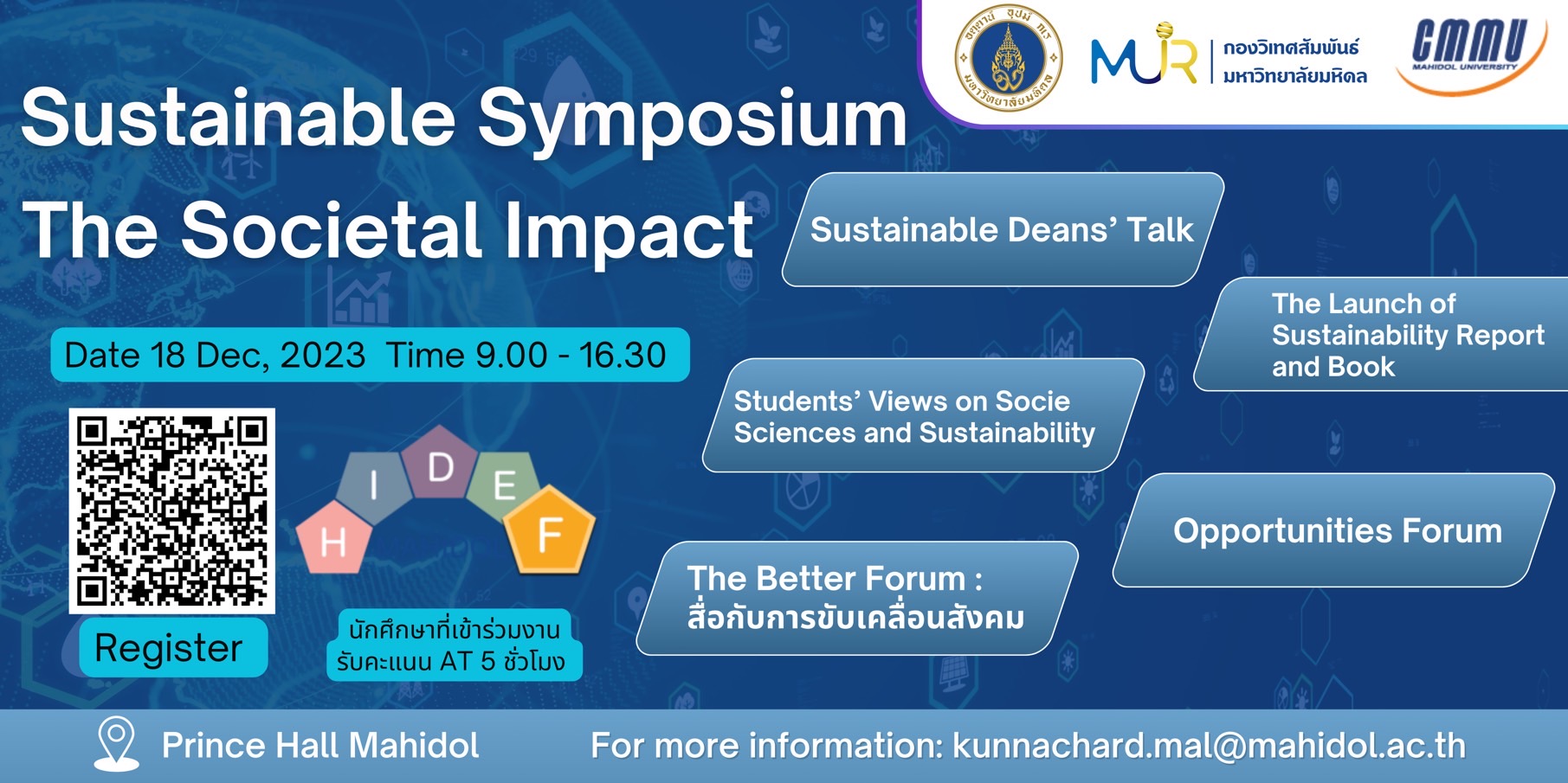 ขอเชิญผู้สนใจเข้าร่วมงาน Sustainable Symposium: The Societal Impacts